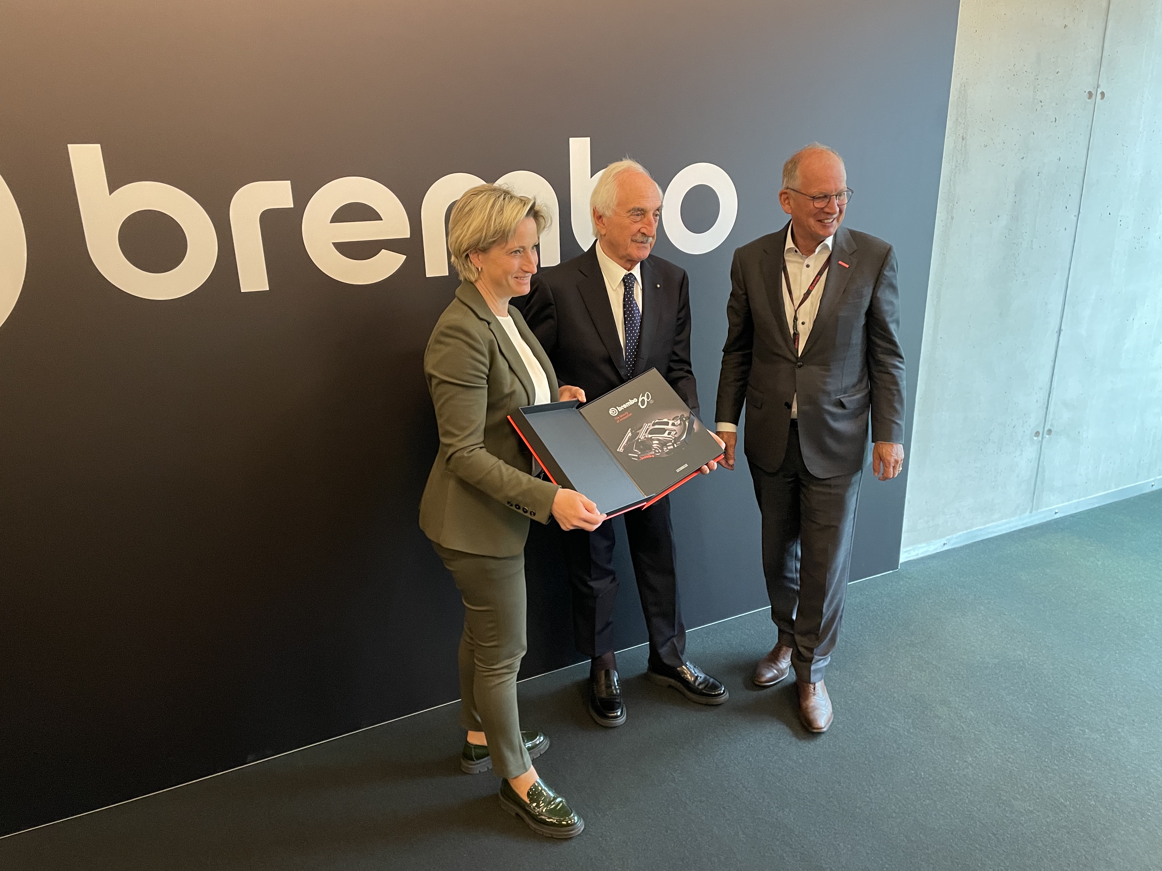 Am zweiten Tag der Reise besuchten wir die Firma BREMBO in Stezzano, einen international tätigen italienischen Automobilzulieferer. Dort wurden wir von Herrn Alberto Bombassei, dem Gründer des Unternehmens, empfangen und erhielten eine Firmenpräsentation sowie eine Führung durch die Ausstellung „Art auf Braking“.