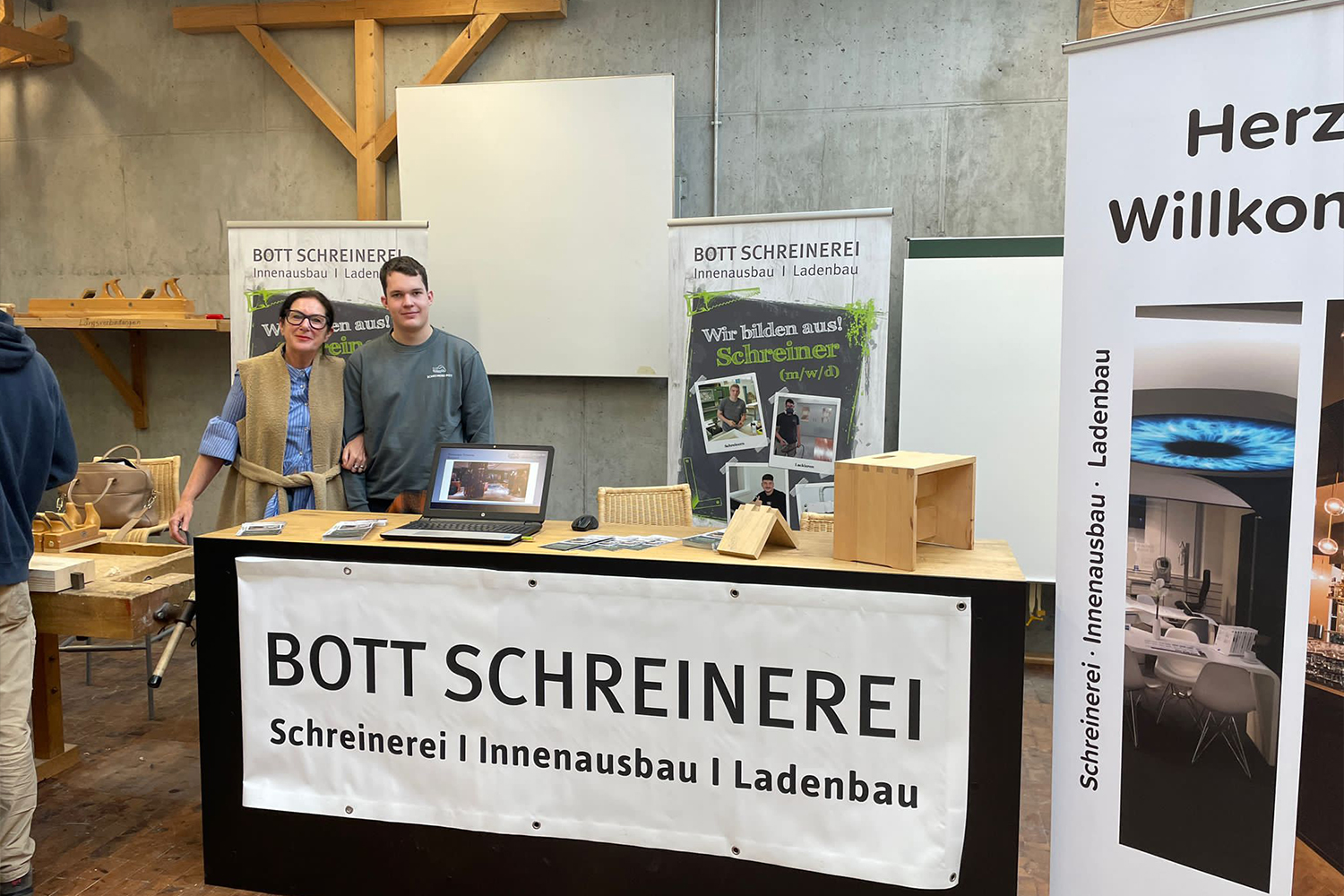 Auch wir waren vor Ort, um neue Talente für unseren Beruf zu begeistern. Gemeinsam mit unseren 3 Azubis stellten wir interessierten Jugendlichen den Ausbildungsberuf des Schreiners vor. Neben der Beratung durften sich die Schüler auch an unserer Holzdiele selbst einmal am Holz hobeln versuchen.