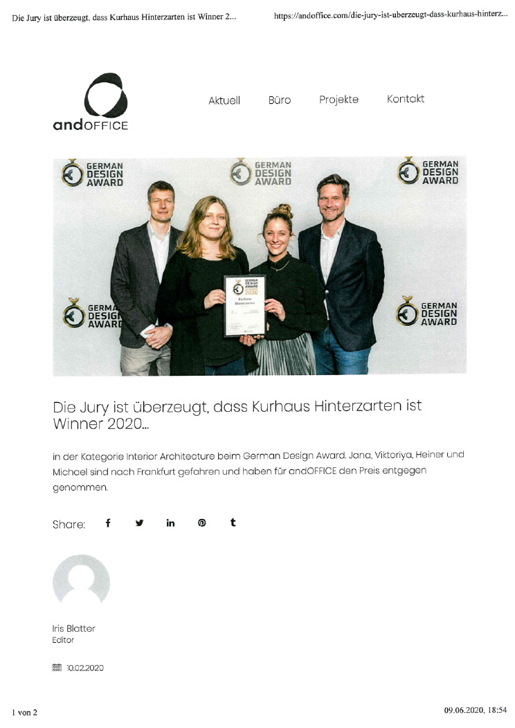 Wir sind mächtig stolz – denn zusammen mit der andOffice Freie Architekten PartGmbB durften wir ein tolles Projekt auf die Beine stellen, das mit dem German Design Award 2020 in der Kategorie Interior Architecture prämiert wurde!